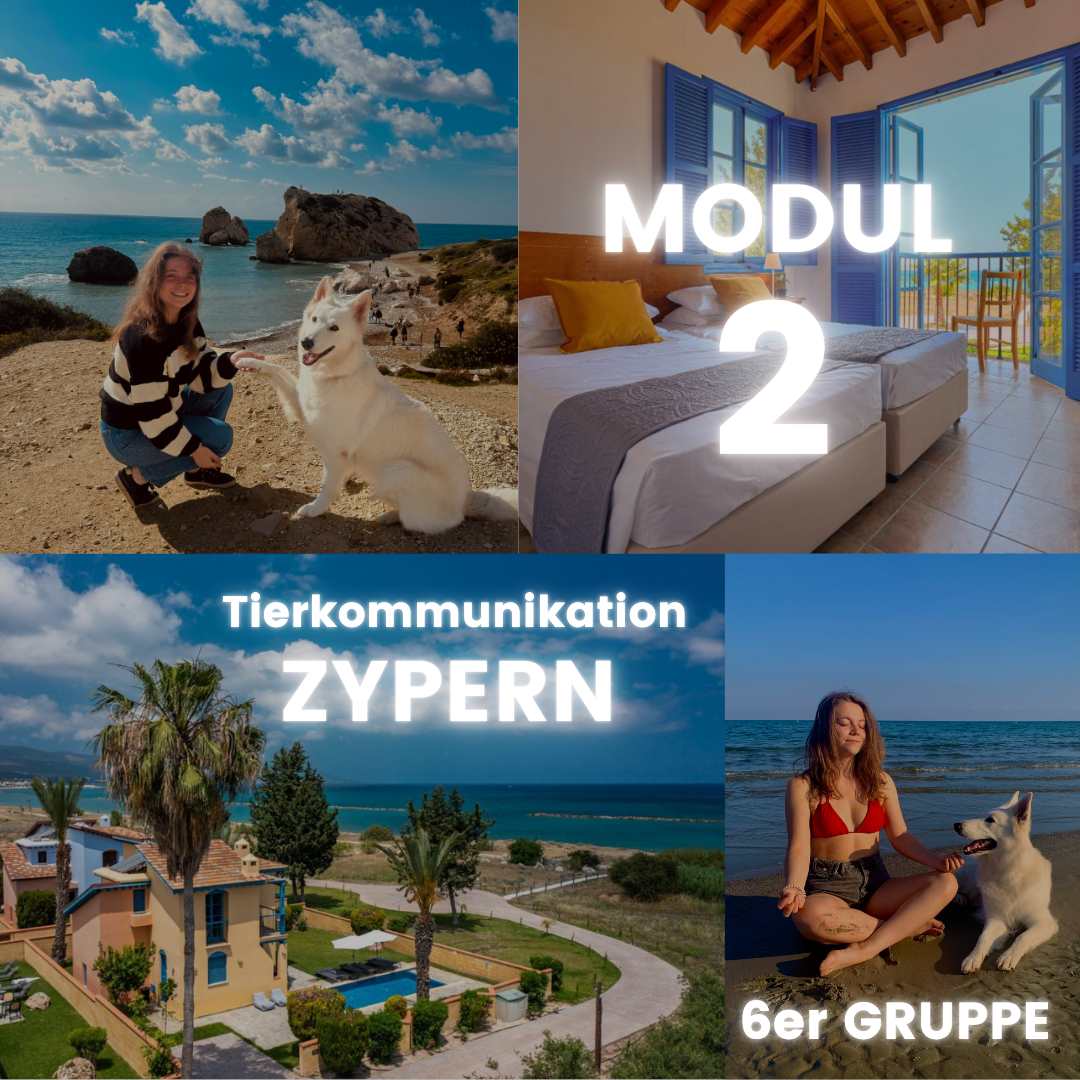 Tauche ein in die faszinierende Welt der Tierkommunikation, umgeben von der malerischen Schönheit Zyperns. Meine exklusive Intensivausbildung "FREUNDSCHAFT fürs LEBEN" in einem umfassenden Programm, das dir nicht nur das Sprechen mit Tieren näherbringt, sondern auch ein unvergessliches Urlaubserlebnis bietet.
